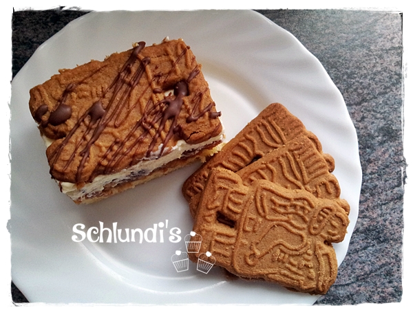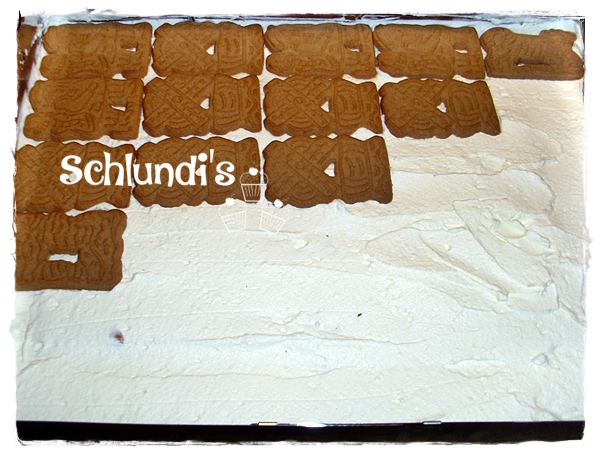 Der Kuchen sollte einmal übernacht stehen damit die Spekulatius schon durchziehen!