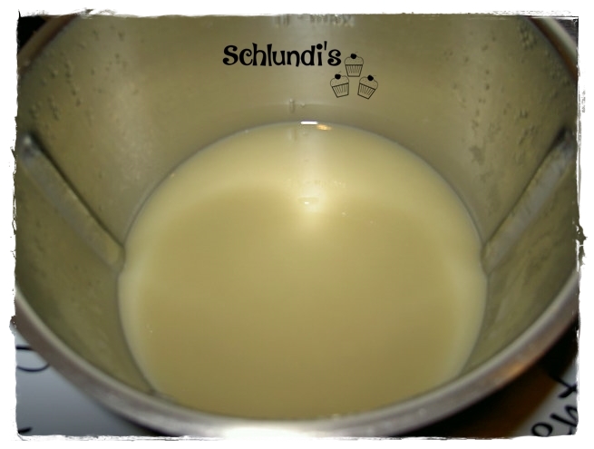 Das Wasser zugeben und den Saft der Zitrone, es sollte so ca. 25ml Zitronensaft sein.