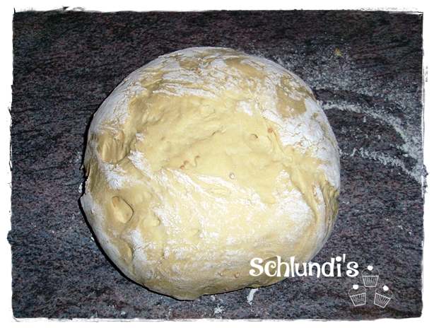 Teigling dann auf eine bemehlte Ablage geben und zu einer Kugel formen – abgedeckt ca.15 Min. ruhen lassen.