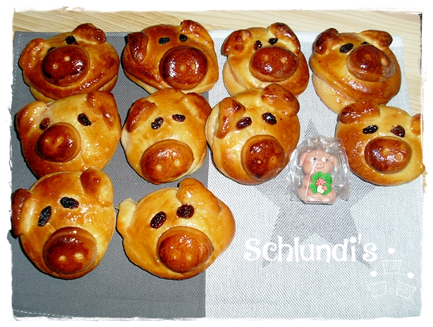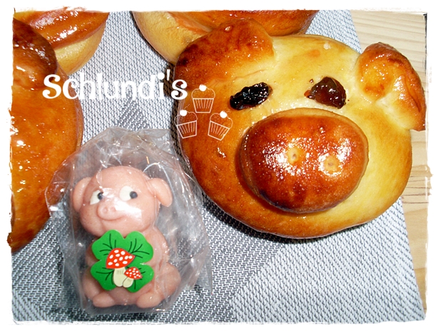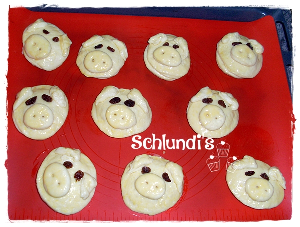 Backofen auf 190° Ober-/Unterhitze vorheizen und die Glücksschweinchen ca. 15 Min. backen.