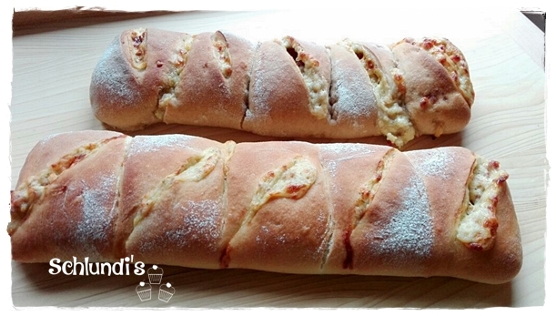 Nun, ich hab mich schlau gemacht und herausgefunden, dass man das Handbrot auch Brotwickel nennt, es auch mit verschiedenen Zutaten füllen kann. Käse ist in jedem Fall immer dabei – man könnte z. B. gekochten Schinken, Rauchschinken, frische Champignons oder auch Tomaten verwenden.