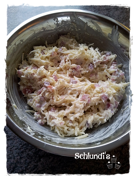 200g geriebener Käse – ich hatte Emmentaler und Gouda