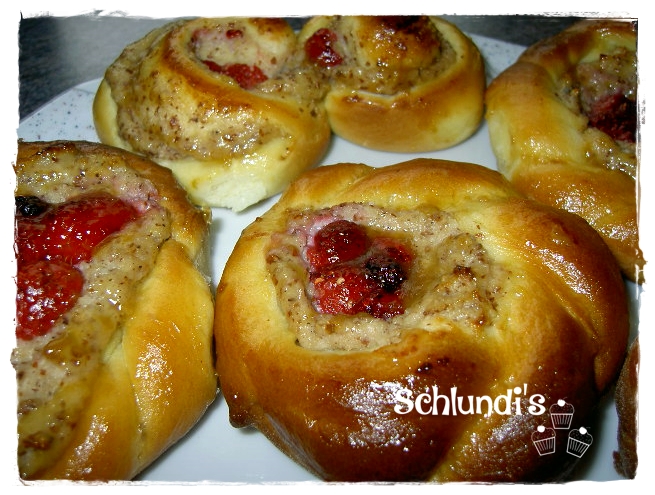 Aus dem restlichen Teig und der Fülle hab ich noch Schnecken geformt.