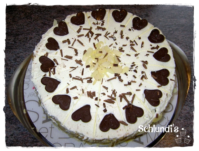 Unter dem Rezept sind auch noch Fotos mit einer Variante ohne Mascarpone, dann einfach 3 Becher Schagsahne aufschlagen und nach Lust und Laune verzieren und dekorieren.