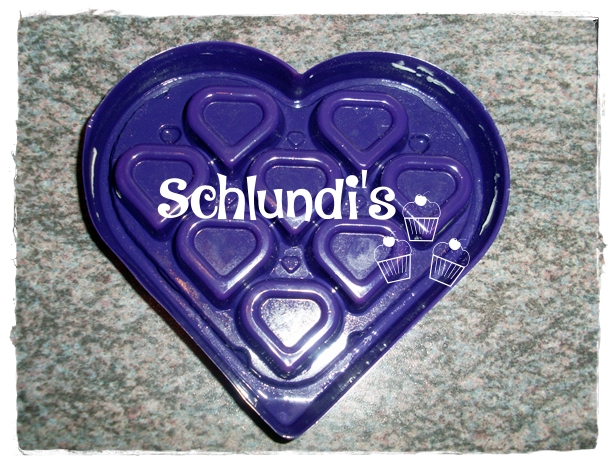 Jetzt können die Herzen ausgestochen werden. Entweder mit einer großen Ausstechform oder so wie ich es gemacht habe – mit einer Verpackung der Mini Lila Herzen 😉
