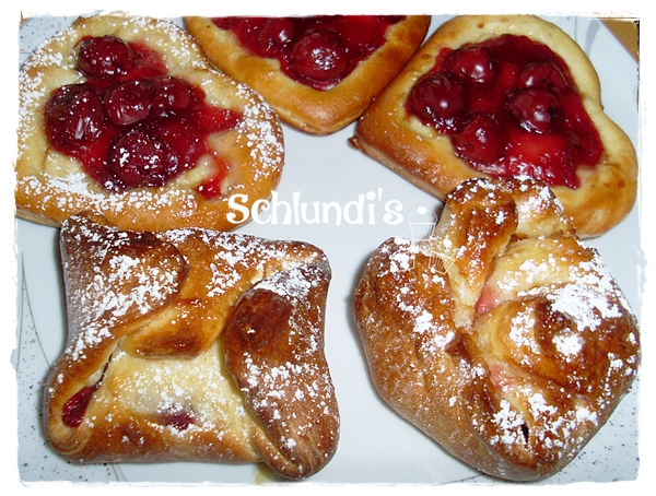 Alle Zutaten, außer Blätterteig und Füllung in die Knetschüssel geben und 6-8 Minuten gut verkneten. Die Milch solle angewärmt werden, damit die Hefe gut anspringen kann.