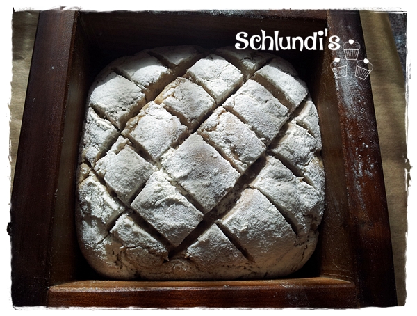 Man kann natürlich das Brot auch im rechteckigen Holzrahmen oder in einer sauerteigbeständigen Kastenform backen.