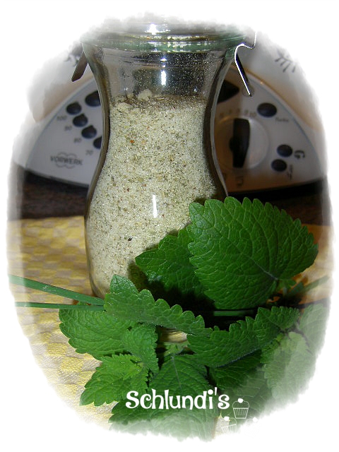 Die Kräuter und den Knoblauch mit 200g Salz in den Mixtopf