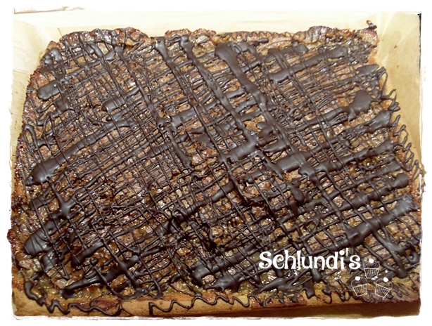 Nach dem Auskühlen eine dunkle Kuvertüre schmelzen und auf dem Blech verteilen.