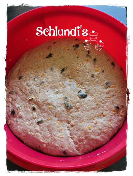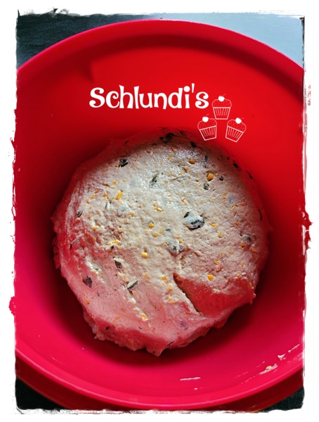 Den Teigling auf eine bemehlte Arbeitsfläche geben, vorsichtig zu einem runden Laib formen und mit Schluss nach unten bei Raumtemperatur 60 Minuten in einem bemehlten Gärkörbchen gehen lassen.