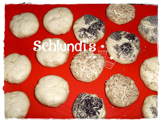 Die „Minis“ ca. 15-20 Min. goldgelb backen. Der Ausbund (Rißbildung) der Brötchen sollte ähnlich wie eine Kaisersemmel sein, man kann sie auch mit einem Brötchenstempel einzudrücken.