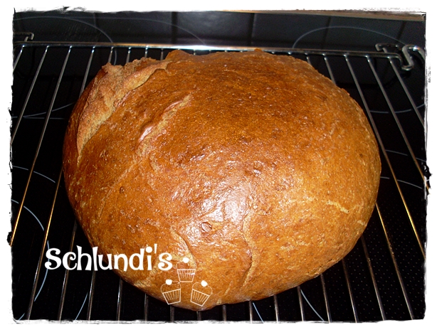 15 Min. bei 250° Ober-/Unterhitze anbacken lassen. Dann kurz den Ofen öffnen um den Dampf abzulassen, die Temperatur auf 210° drosseln, weitere 30 Min. backen, dann das Brot kurz mit Wasser aus einer Blumenspitze annetzen, wieder 10 Min. backen lassen, wieder annetzen und nochmals 10 Min. backen lassen. Das Brot sollte dann fertig sein….ganz zum Schluss noch einmal mit der Blumenspritze ansprühen und aus dem Ofen nehmen.