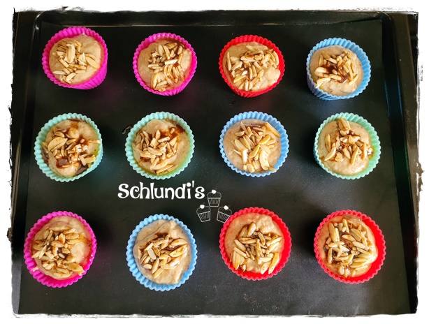 Die Muffins bei 170°C Heißluft 20-25 Minuten backen. Stäbchenprobe machen.