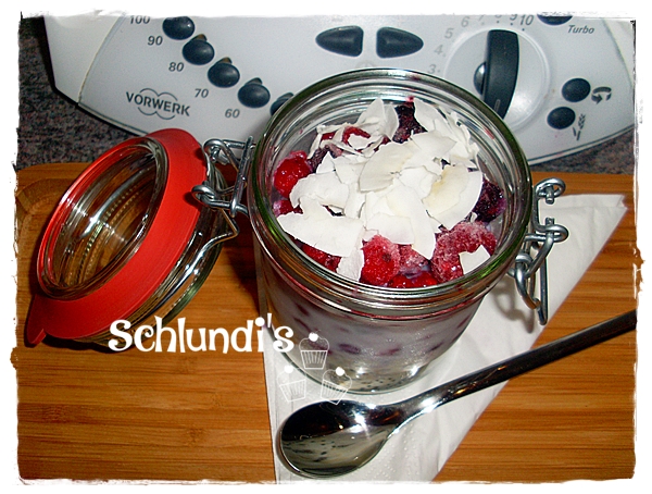 - Am nächsten Morgen frisch aus dem Kühli genießen, oder mit zur Arbeit/Sport nehmen und in der Pause/nach dem Training gönnen – durch das verschlossene Glas kann die Portion gut transportiert werden 🙂
