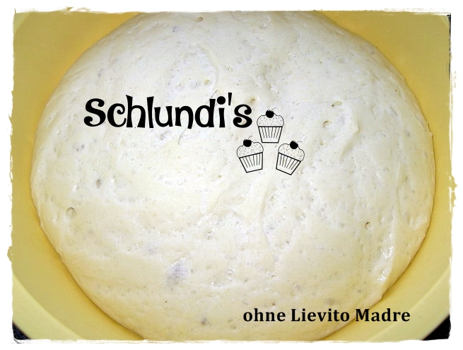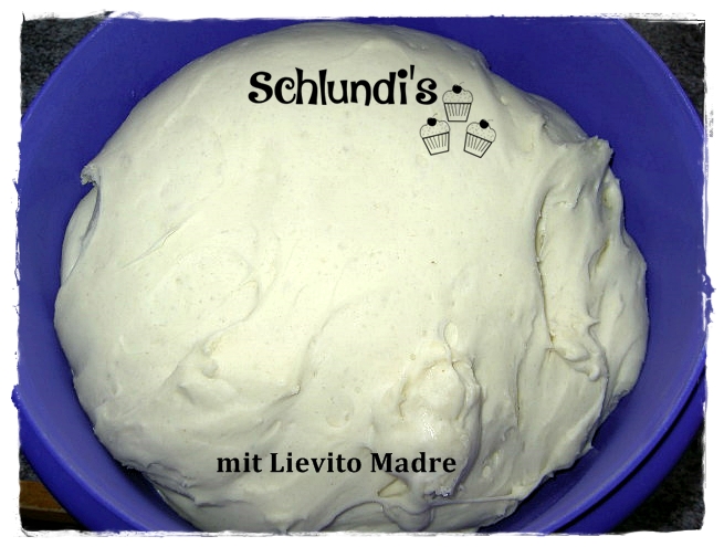 Zusätzlich hab ich einen Versuch mit Lievito Madre gemacht, ich hab zu den angegeben Zutaten 100g fertige kalte LM aus dem Kühlschrank zugegeben. Der LM-Teig war etwas kompakter beim Ausrollen als ohne LM – der Geschmack war aber nach dem Zubereiten genauso wie der Teig ohne!