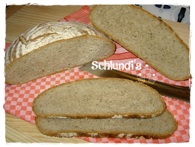 Ich hatte mich mal wieder in der Menge vertan und überall das doppelte in den TM gepackt, das hat der „Gute“ aber nicht kneten wollen – kurzerhand hab ich alles in meine „Assi“ umfüllt und diese kneten lassen. Deshalb hab ich auch 2 Brote gebacken. Das kommt davon wenn man rumprobiert und die Mengen nicht bedenkt! 😉
