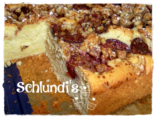 Dieser Kuchen geht super schnell und man kann mit sämtlichen Belägen improvisieren. Dieser hier ist mit Zwetschgen und Walnussbruch…..der letzte war Obstsalat aus der Dose, abgegossen, mit Mandelblättchen, Kokosflocken und Honig obendrauf….. also – irgendwas hat „Frau“ doch immer im Haus! 😉