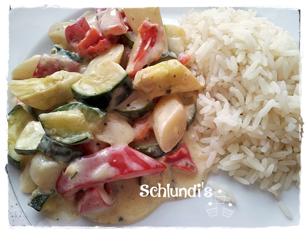 Dazu paßt gut Reis oder Nudeln und Kurzgebratenes wie z.B. Frikadellen, Hähnchen – Putenminutensteaks oder auch Fisch z.B. Lachs ect..