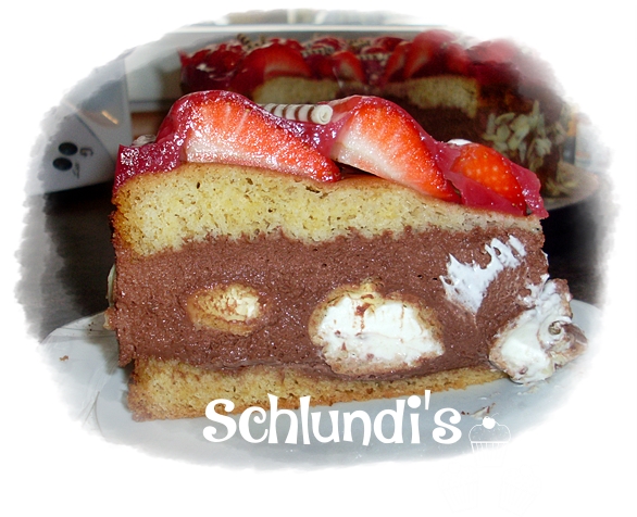 Windbeuteltorte mit Schokocreme und Erdbeeren