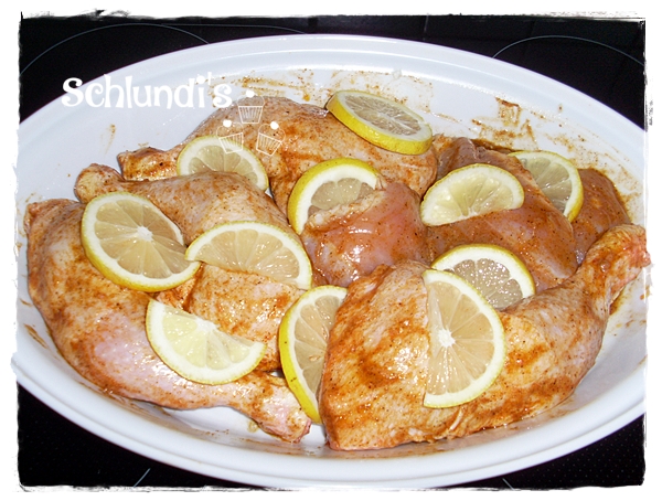 Die Garzeit richtet sich nach der Größe der Schenkel oder den Filets – Schenkel brauchen definitv länger als die Filets. (Ich hatte 4 Schenkel und 4 Filets)